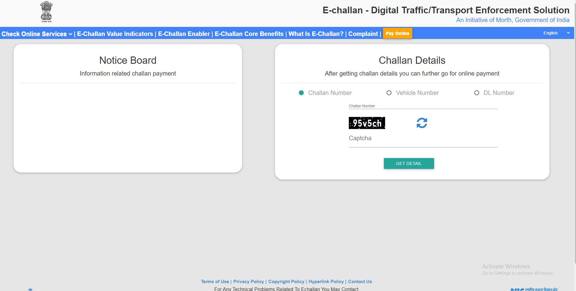 - Enter your details: Provide your vehicle number, challan number, or driving licence number.